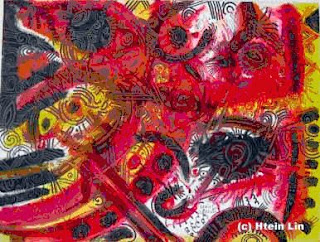(ပန္းခ်ီ ထိန္လင္း, Bloodbath, Acrylic on Canvas, 60X45, 2006)