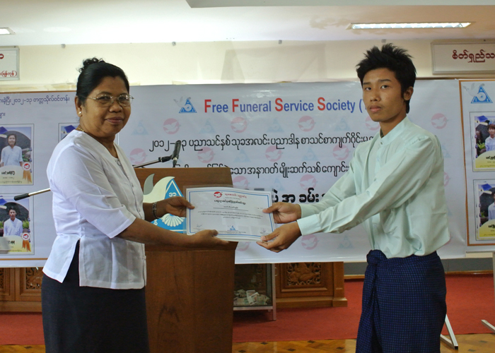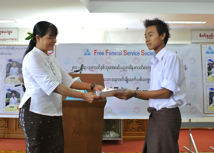 နာေရးကူညီမႈအသင္း(ရန္ကုန္)၏ “သုခအလင္းပညာဒါန” တြင္ ပညာသင္ၾကားခဲ့ၾကေသာ ေက်ာင္းသား/ သူ (၃ဝ) ဦး၌ ေအာင္ျမင္သူ (၁၉) ဦးျဖစ္ၾကေသာ ေမာင္ေကာင္းထက္ပိုင္ (ဆမဒ-၂၇၃၇)၊ ေစာခန္႔လြင္ (ဆဒရ-၂၁၃၄)၊ ရန္ႏိုင္ဝင္း (ဆဒမ-၃၁၇၆)၊ ေက်ာ္စြာဝင္း (ဆဒရ-၂၂၃၅)၊ ျမတ္ကိုဟန္ (ဆတဥ-၂၄၆၆)၊ ၿဖိဳးေဝစိုးႏိုင္ (ဆဒမ-၂၇၁၇)၊ သန္းထြန္းေအာင္ (ဆဒမ-၃၄၁၀)၊ သက္ပိုင္ဦး (ဆဒမ-၁၁၈၂)၊ ခြာညိဳအိ႐ိွန္ (ဆဒမ-၁၀၀၉)၊ ဝင္းလဲ့ရည္ (ဆမက-၉၁၄၁)၊ ခိုင္ဇင္စိုး (ဆဒမ-၂၄၀၉)၊ ေအးျပည္႔ျပည္႔ၿဖိဳး (ဆဒတ-၁၃၄၃)၊ သီရိသိမ့္ (ဆဒမ-၃၂၆၆)၊ ေက်ာ္စြာသိန္း (ဆဒမ-၃၂၄၆)၊ ဥကၠာၿဖိဳး (ဆဒမ-၉၃၆)၊ ရဲထြန္းဦး (ဆဒမ-၃၄၉၅)၊ ခိုင္မဥၨဴဟန္ (ဆဒမ-၃၃၁၀)၊ ႐ိႈင္းကိုကို (ဆဒမ-၇၅၄)၊ မ်ိဳးမ်ိဳးေက်ာ္ (ဆဒရ-၁၆၂၆) တို႔အား ဂုဏ္ျပဳျခင္း အခမ္းအနားအား က်င္းပခဲ့ရာ နာေရးကူညီမႈအသင္း(ရန္ကုန္) ဥကၠဌ ဦးေက်ာ္သူမွ အမွတ္တရ ဂုဏ္ျပဳစကားေျပာၾကားျခင္း၊ နာေရးကူညီမႈ အသင္း(ရန္ကုန္)၏ ပညာေရးအႀကံေပးဆရာမ ေဒၚနီလာမွ သင္ၾကားမႈႏွင့္ပတ္သက္၍ ေက်ာင္းသား/သူမ်ားအား အမွတ္တရ စကားေျပာၾကားခဲ့ၾကၿပီးေနာက္ တကၠသိုလ္ဝင္တန္း စာေမးပြဲႀကီး နီးကပ္လာခ်ိန္တြင္ ေက်ာင္းသား/သူ မ်ားႏွင့္အတူ Guide အျဖစ္ လာေရာက္၍ စာဝိုင္းဖတ္ေပးခဲ့ၾကေသာ ဆရာ/မမ်ားအား ေမတၱာလက္ေဆာင္ ခ်ီးျမႇင့္ ျခင္းႏွင့္ ေက်ာင္းသား/သူမ်ားအား သင္ၾကားေပးခဲ့ေသာ ဆရာ/မမ်ားတို႔မွ ဂုဏ္ျပဳလက္မွတ္ႏွင့္ လက္ေဆာင္ခ်ီးျမႇင့္ ျခင္းမ်ား ျပဳလုပ္ခဲ့သည္။ ထို႔ေနာက္ ေက်ာင္းသား/သူမ်ားကိုယ္စား ေမာင္ေကာင္းထက္ပိုင္မွ ေက်းဇူးတင္ဝမ္းေျမာက္ စကား ေျပာၾကားျခင္းႏွင့္ ေက်ာင္းသားမိဘမ်ားကိုယ္စား တကၠသိုလ္ဝင္တန္းေအာင္ျမင္သူ မဝင္းလဲ့ရည္၏ ဖခင္မွ ေက်းဇူးတင္ဝမ္းေျမာက္ စကားေျပာၾကားခဲ့ရာ “ကၽြန္ေတာ္အေနနဲ႔ ေက်ာင္းသားမိဘမ်ားကုိယ္စား ေက်းဇူးတင္ စကားေျပာခြင့္ရတဲ့အတြက္ ေက်းဇူးတင္ပါတယ္။ နာေရးကူညီမႈအသင္း(ရန္ကုန္)က ကၽြန္ေတာ္တို႔မိသားစုအေပၚမွာ ေက်းဇူးအမ်ားႀကီးရွိခဲ့ပါတယ္။ ကၽြန္ေတာ့္သမီး မဝင္းလဲ့ရည္ဟာ သုခအလင္းပညာဒါနမွာ တက္ေရာက္ခဲ့ၿပီးေတာ့ တကၠသိုလ္ဝင္တန္းကို ဒီႏွစ္မွာ ေအာင္ျမင္ခဲ့ပါတယ္။ သူ တကၠသိုလ္ဝင္တန္း ေအာင္စာရင္းထြက္တဲ့ေန႔က သူ႔အေမ ကၽြန္ေတာ့္အမ်ိဳးသမီးက အေရးေပၚေဆး႐ံုတင္ၿပီး ခြဲစိတ္မႈခံယူခဲ့ရတယ္။ အဲဒီခြဲစိတ္မႈအတြက္ကို ဦးေက်ာ္သူတို႔ သုခေဆးခန္းက ခြဲစိတ္ကူညီမႈေပးခဲ့ပါတယ္။ အဲဒီအတြက္လည္း ေက်းဇူးအမ်ားႀကီး တင္ပါတယ္။ ေက်ာင္းသား/သူ ေတြအေနနဲ႔ ဒီအသင္းက အခ်ိန္ကုန္၊ ေငြကုန္၊ ဆရာ/မေတြ အပင္ပန္းခံၿပီးေတာ့ သင္ၾကားေပးခဲ့တဲ့အတြက္ အခုလို ေအာင္ျမင္မႈေတြ ရ႐ွိခဲ့ၾကတဲ့အတြက္ အသင္းရဲ႕ ေက်းဇူးတရားေတြကို အၿမဲတမ္းေအာင့္ေမ့ၿပီးေတာ့ အသင္းရဲ႕ လူမႈေရးလုပ္ငန္းေတြကို မိမိတို႔ တတ္ႏိုင္တဲ့ဘက္ေန ျပန္လည္ၿပီးေတာ့ ေပ