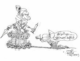 သူတို႔ဆိုတာ “၂၀၁၀ ေရြးေကာက္ပြဲ”ကို အားတက္သေရာ ဆင္ကာဝင္ကာႏႊဲမယ္လို႔ အားခဲေနတဲ့ ျပည္တြင္းက လူတစုကို ရည္ၫႊန္းလိုက္တာပါ။ ျပည္ပမွာလည္း အဲသလို ဝင္ကာဆင္ကာႏႊဲခ်င္သူေတြရွိပါတယ္။ မေျပာပေလာက္ဘူးထင္လို႔ ျပည္ပကသူတို႔ကိုေတာ့ ထည့္မေျပာေတာ့ပါဘူး။ သူတို႔ခမ်ာလည္း “၁၀ ႏွစ္မွ်တစ္ဆက္တည္းေနထိုင္သူျဖစ္ရမယ္” ဆိုတဲ့ ပုဒ္မေၾကာင့္ စိတ္အပ်က္ႀကီးပ်က္ၾကရ တယ္ထင္ပါတယ္။ သူတို႔အသံကို မၾကားရေတာ့ဘူး။ ဒါေတြထားလိုက္ေတာ့။