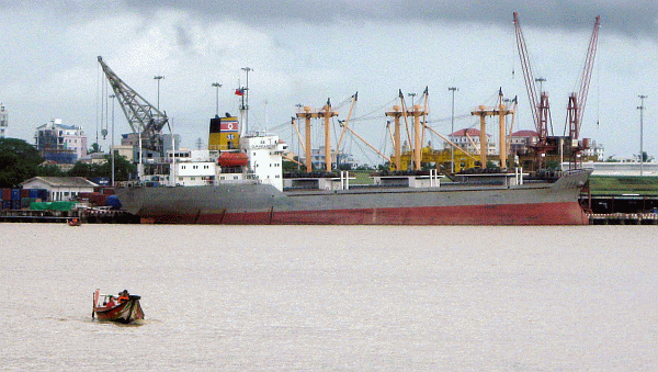 (ဓာတ္ပုံ – ဗိုလ္ေအာင္ေက်ာ္ဆိပ္ကမ္းတြင္ ၀င္ေရာက္ဆိုက္ကပ္ခဲ့ေသာ ေျမာက္ကိုရီးယားသေဘၤာ MV DU MAN GANG အား  ၂၀၀၉ ခုႏွစ္ ဇူလိုင္လအတြင္းကေတြ႕ရစဥ္ – မုိးမခ)