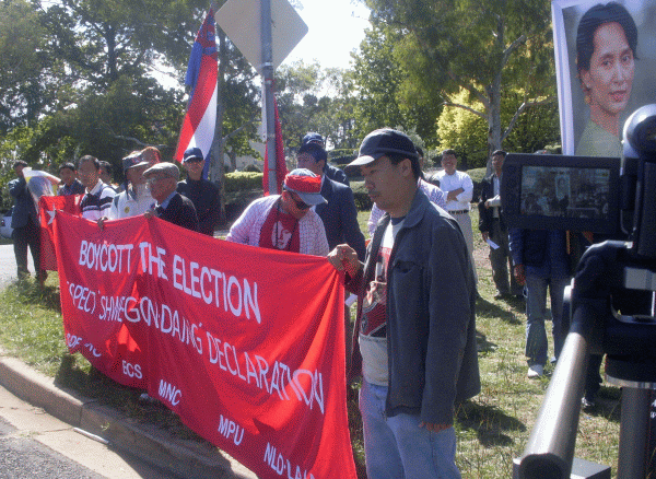 မတ္လ ၃၁က ျမန္မာ့ႏိုင္ငံေရးအဖြဲ႕အစည္းမ်ား၊ ျမန္မာ့ဒီမိုကေရစီအေရး တက္ၾကြ လွဳပ္ရွားသူမ်ားက ၾသစေၾတးလ်ၿမိဳ႕ေတာ္ ကင္ဘာရာတြင္ ဖြင့္လွစ္ထားသည့္ နအဖစစ္အစိုးရ၏ သံရံုးေရွ႕တြင္ နအဖစစ္အစိုးရ ၏ ၂၀၁၀ ေရြးေကာက္ပြဲဥပေဒႏွင့္ ေရြးေကာက္ပြဲအေပၚ ဆန္႕က်င္ဆႏၵျပပြဲကို က်င္းပခဲ့ၾကသည္။