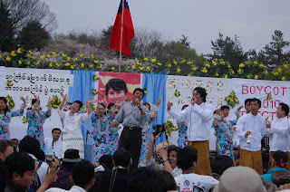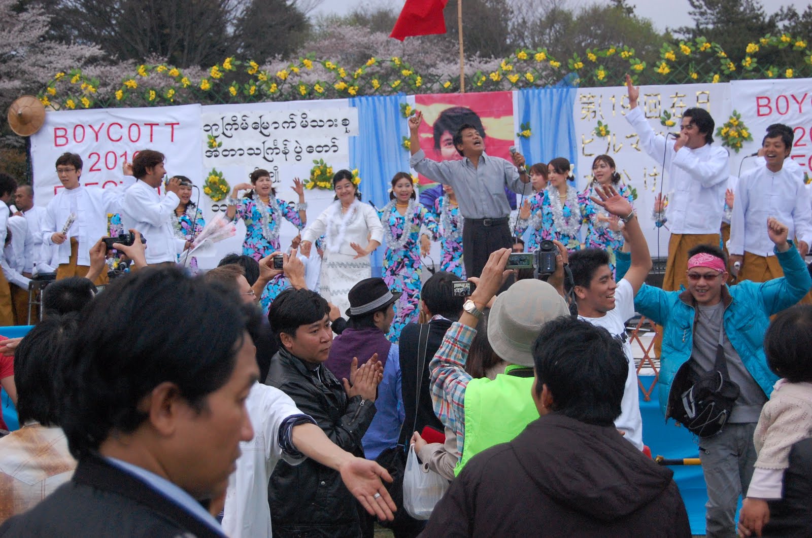 စင္ျမင့္ထက္မွာ ေရြးေကာက္ပြ ဲအား ျပတ္ျပတ္သားသားဆန္႔က်င္ေၾကာင္း စာတန္းမ်ား ေရးထိုးထားပါတယ္။ အျငိမ့္၊ ေခတ္ေပၚေ တးဂီတ၀ိုင္းမ်ား၊ ယိမ္းအကနွင့္ မဂ္လာဒိုး အႏုပညာအင္အားစုမွ သံခ်ပ္မ်ား၊ သၾကၤန္အကမ်ားႏွင့္ စုံလင္စြာ တင္ဆက္ႏိုင္ခဲ့ပါတယ္။ စင္ျမင့္ရဲ့ေဘးတဖက္တခ်က္မွာ တိုင္းရင္သားရိုးရာ စားေသာက္ဆို င္မ်ား၊ ျမန္မာျပည္အလြမ္းေျပ သျကၤန္ရိုးရာစားစရာဆိုင္မ်ားန႔ဲ စည္ကားတာကို ေတြ႔ရပါတယ္။