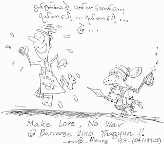 >Cartoon Maung Yit – Make Love, No War at Burmese 2010 Thagyan