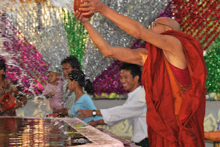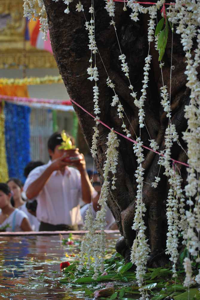 ရန္ကုန္ျမိဳ႔ရဲ့ က်က္သေရေဆာင္ ေရႊတိဂုံရင္ျပင္ေတာ္မွာ ယမန္ေန႔ ေန႔ခင္းပိုင္းကစျပီး ေညာင္ေရသြန္းၾကတဲ့ ဘုရားဖူးေတြနဲ႔ စည္ကားခဲ့ပါတယ္။ ရင္ျပင္ေတာ္ေပၚမွာ မဟာေဗာဓိေညာင္ပင္မ်ားကို အေရွ႔ေတာင္ေထာင့္၊ အေနာက္ေတာင္ေထာင့္၊ အေနာက္ေျမာက္ေထာင့္တို႔မွာ စိုက္ပ်ဳိးပူေဇာ္ထားရွိပါတယ္။ အေရွ႔ေတာင္ေထာင့္မွာ ရွိတဲ့ မဟာေဗာဓိ ေညာင္ပင္မွာ ေညာင္ေရသြန္းတဲ့သူေတြ ပိုမိုမ်ားျပားပါတယ္။