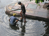 “ကၽြတ္ကၽြတ္အိတ္ေတြနဲ႔ အမႈိက္ေတြကေတာ့ ေရစီးထဲ ေမ်ာေနလိုက္တာ – ဧရာ၀တီျမစ္ထဲက သေဘာၤေတြလိုပဲ။ ျမိဳ႔ခံအခ်ဳိ႔က နာမည္ေျပာင္ေပးထားတဲ့ လမ္းတ၀က္တပ်က္ခင္း ေအာင္သိန္းလင္း ဆိုတဲ့ ေရြးေကာက္ပြဲ၀င္မယ္ ဆိုတဲ့ ျမိဳ႔ေတာ္၀န္ကေတာ့ သူ႔၀န္ထမ္းေတြကို ဘာမွ ညႊန္ၾကားခ်က္ ထုတ္ေသးပုံ မရဘူး” ဟု ပရိသတ္တဦးက ဆိုသည္။