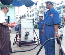 (ဓာတ္ပုံမ်ား၊ အင္တာနက္ – ျမန္မာဓာတ္ဆီဆိုင္၏ ပန္႔မ်ား၊ ရန္ကုန္လမ္းမမ်ားေပၚက လမ္းေဘးဓာတ္ဆီေရာင္းသူမ်ား၏ ဆိုင္)