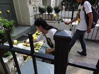 အခမ္းအနားအစီအစဥ္အတိုင္း ျမန္မာစစ္သံရုံးေရွ႔တြင္ စုေ၀းၾကျပီး သံရုံးတံခါး၀ႏွင့္ ျခံ၀င္းေရွ႔တြင္ ပန္းစည္းအ၀ါမ်ား တဦးခ်င္း တန္းစီကာ အမွတ္တရ ေနရာခ်ၾကသည္ကို ေတြ႔ရသည္။ ထိုအခ်ိန္တြင္ သံရုံး၀န္ထမ္းတဦးက အျပင္သို႔ ထြက္ရွိလာျပီး ေမြးေန႔အခမ္းအနား ေဆာင္ရြက္ေနသူမ်ားကို အသံက်ယ္ေလာင္စြာ ဟိန္းေဟာက္ေျပာဆိုျခင္း၊ တားျမစ္ျခင္း၊ ရုန္႔ရင္းၾကမ္းတမ္းေသာ စကားမ်ား သုံးစြဲသည္ဟု ၾကားသိရသည္။ ၎ေနာက္ သံရုံးအတြင္းသို႔ ျပန္လည္၀င္ေရာက္သြားရာ လမ္းေပၚတြင္ စီစဥ္ထားေသာ ေဒၚေအာင္ဆန္းစုၾကည္ ဓာတ္ပုံမ်ားႏွင့္ ပန္းစည္းမ်ားကို ေျခေထာက္ျဖင့္ ကန္ထုတ္လိုက္သည္ ဟု မ်က္ျမင္တို႔က ေျပာ၏။