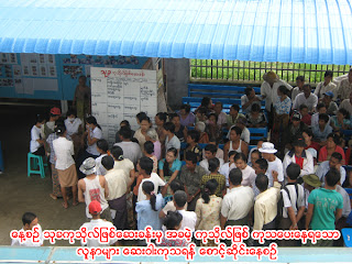 ထို႔ေၾကာင့္ နာေရးကူညီမႈအသင္း(ရန္ကုန္) ဥကၠဌ ဦးေက်ာ္သူသည္ ျပည္ၿမိဳ႕မွ ၁.၇.၂၀၁၀ (ၾကာသပေတး) ေန႔ နံနက္ (၉း၀၀) နာရီတြင္ ရန္ကုန္ၿမိဳ႕ ေျမာက္ဒဂံုရံုး နာေရးကူညီမႈအသင္း (ရန္ကုန္)သို႔ ေရာက္ေရာက္ျခင္း စ်ာပနသင္တန္းတြင္ လုပ္အားေပး အသင္းသူ/သားမ်ားအား ရုပ္အေလာင္းမ်ားကို သြားေရာက္ သယ္ေဆာင္ရာတြင္ ေၾကာက္ရြံ႕ျခင္း၊ ရြံရွာျခင္းတို႔ မျဖစ္ေပၚေစရန္ စ်ာပန ပို႔ေဆာင္ေရး သင္တန္း ၃/၂၀၁၀ မွ စ၍ မိမိတို႔ ကူညီေဖးမခဲ့မႈမ်ား၊ အေတြ႔အႀကံဳမ်ား (ရဲမႈခင္း) လမ္းေၾကာင္းမ်ားကို ပရိုဂ်က္တာျဖင့္ ျပသ ပို႔ခ်ကာ လူမႈေရး ရဲေဆး တင္ေပးခဲ့ပါသည္။