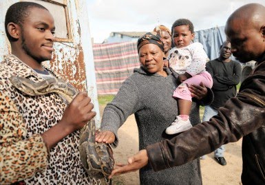 ေတာင္အာဖရိက ေပ်ာက္ေစဆရာမ်ားက ေဘာလုံးပဲြကာလတြင္ ၀ိညာဥ္တုိ႔ႏွင့္ ဆက္သြယ္သည့္အခါ ထုိေျမြကုိ ၾကားခံ သတၱ၀ါအျဖစ္ သုံးၾကသည္ဟု SPCA ေျပာခြင့္ရ အရာရိွ Sarah Scarthက ရွင္းျပေၾကာင္း AFP သတင္းတြင္ ေတြ႔ရသည္။