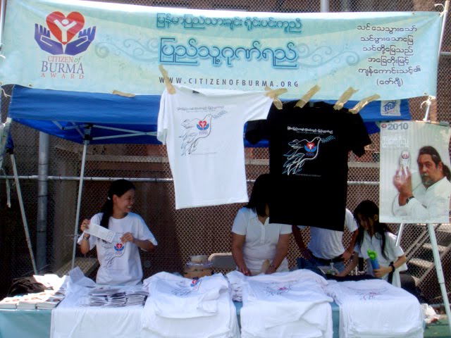 လက္ကမ္းစာေစာင္မ်ား (သည္ေနရာက ရယူပါ) နဲ႔ ပထမဦးဆုံးအၾကိမ္ ျပည္သူ႔ဂုဏ္ရည္ဆုရွင္ ဦးေက်ာ္သူကို ဂုဏ္ျပဳထုတ္ေ၀တဲ့ ပို႔စကဒ္မ်ားကိုလည္း ျဖန္႔ေ၀ခဲ့ၾကပါတယ္။ ဆိုင္ခန္း ၅ ခန္းကို ဆက္တိုက္ ရယူထားျပီး ဆင္တူ နဖူးစီးဒီဇုိင္းစာတန္းမ်ား ခ်ိတ္ဆြဲကာ လုပ္အားေပးသူနဲ႔ စီစဥ္သူ ၃၆ ဦးက ၀ိုင္း၀န္းခဲ့ၾကတာကို ေတြ႔ရပါတယ္။