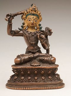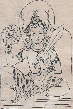တိဗက္ နဲ႔ တ႐ုတ္ႏိုင္ငံတဝိုက္မွာ အေတြ႔ရမ်ားတဲ့ မၪၨဴသီရိ ဘုရားေလာင္းပံုေတြက ပဒုမာသန တင္ပ်ဥ္ေခြ ထိုင္ၿပီး ညာလက္မွာဓား၊ ဘယ္လက္က စာအုပ္ကိုင္ပါတယ္။