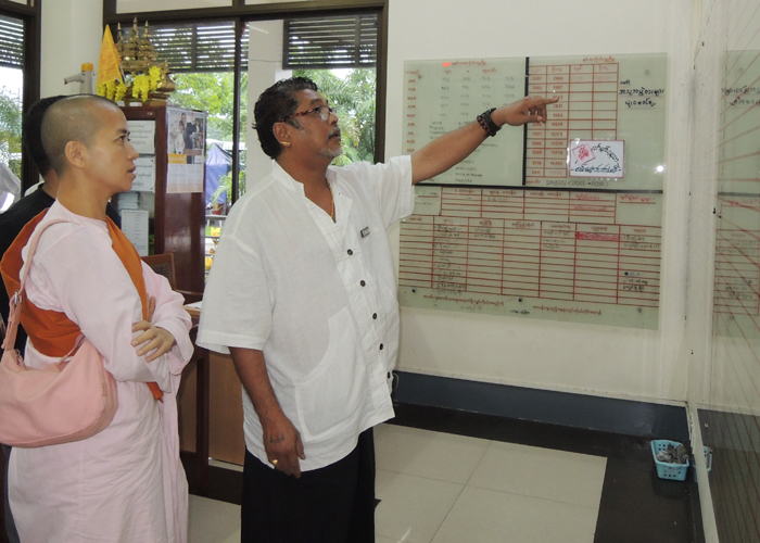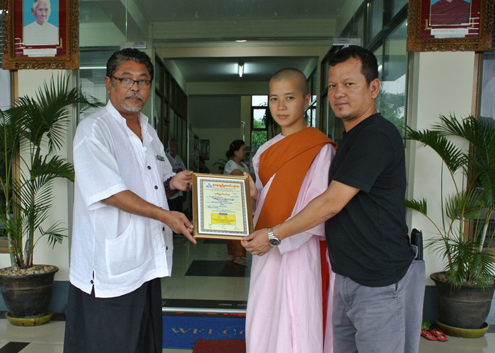 “သီလ႐ွင္အေနနဲ႔ အခုလုိ သတင္းတင္တာ ၾကြားဝါသလိုျဖစ္မွာစိုးလို႔ မတင္ေစခ်င္ဘူူး၊ မသင့္ေတာ္ပါဘူး၊ ဒါေပမယ့္ အမ်ားသူငါ မုဒိ တာပြားႏိုင္ေအာင္ တင္ခ်င္တယ္ဆိုေတာ့ မတားေတာ့ပါဘူး၊ သီလရွင္အေနနဲ႔ လွဴခ်င္ေနတာၾကာၿပီ ဒါေပမယ့္ အေၾကာင္းမတိုက္ဆိုင္ေတာ့ မလွဴျဖစ္ခဲ့ဘူး၊ ဒီကေန႔ေတာ့ အေၾကာင္းတိုက္ဆိုင္္လို႔ လွဴျဖစ္ခဲ့ တယ္၊ သီလရွင္က တစ္ပါးတည္း မိဘေတြကလည္း မရွိေတာ့ဘူးဆိုေတာ့ ဟိုးတုန္းက ေတြးမိဖူးတယ္၊ ငါေသရင္ ဘယ္သူကမ်ား အသုဘခ်ေပးမလဲလို႔ ေတြးပူခဲ့မိတယ္။ ဒါေပမယ့္ ေနာက္ေတာ့ ကိုေမာင္ (ကိုေက်ာ္သူ)တို႔ နာေရးအသင္းရွိေနတာပဲ ဘာပူစရာရွိလဲလို႔ေတြးမိၿပီး ဒီအသင္းႀကီးက အမ်ားျပည္သူကို ကူညီေပးေနတာဆိုေတာ့ ဒီအသင္းႀကီး ေရရွည္တည္တံ့ဖို႔အတြက္ သီလရွင္အေနနဲ႔ လွဴဖို႔လို မယ္ဆိုတာ ကို ေတြးမိတဲ့အတြက္ အခုလိုအေၾကာင္းတိုက္ဆိုင္စြာနဲ႔ လာလွဴျဖစ္ခဲ့တာပါ” ဟု မိန္႔ၾကားခဲ့သည္။ ပညာေရးႏွင့္ ပတ္သက္၍လည္း သီလ႐ွင္ ပဋိယတၱိစာေပမ်ား သင္ဆည္းပူးေနျခင္းအား ေမးျမန္းၾကည့္ရာ “ပညာေရးအေနနဲ႔ ပထမငယ္ေျဖထားပါတယ္၊ သီလရွင္ဝတ္တာ တစ္ဝါရၿပီးပါၿပီ” ဟု ပကတိ တည္ၿငိမ္ ေအးခ်မ္းစြာျဖင့္ ျပန္လည္ေျဖၾကားခဲ့ပါသည္။