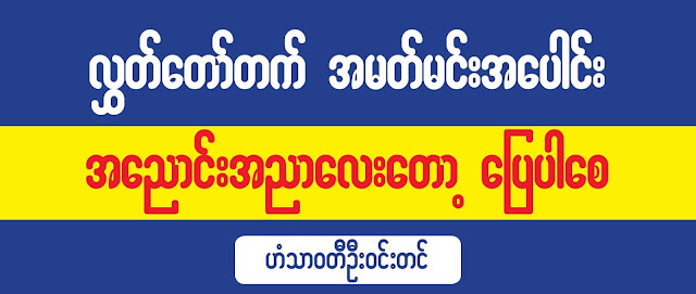 “ကြ်န္မတိုပာာအတိုက္အခံပဲေပါ့။ဒါေပမဲ့ ရန္ျဖစ္ဖို႕လာတဲ့အတိုက္အခံမပာုတ္ဘူး။ ႏုိင္ငံေတာ္ကို ၊ ျပည္သူကိုသစၥာခံမယ့္ အိတိုက္အခံေပါ”တဲ့။ “တရာဥပေဒစိုးမိုေရးအေျခခံ၊ ဒီမိုကေရစီအေျခခံနဲ႕ အာလံုကိုပူးေပါင္းလက္တြဲသြာမယ္”တဲ့။