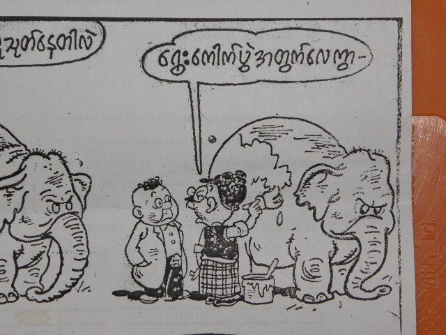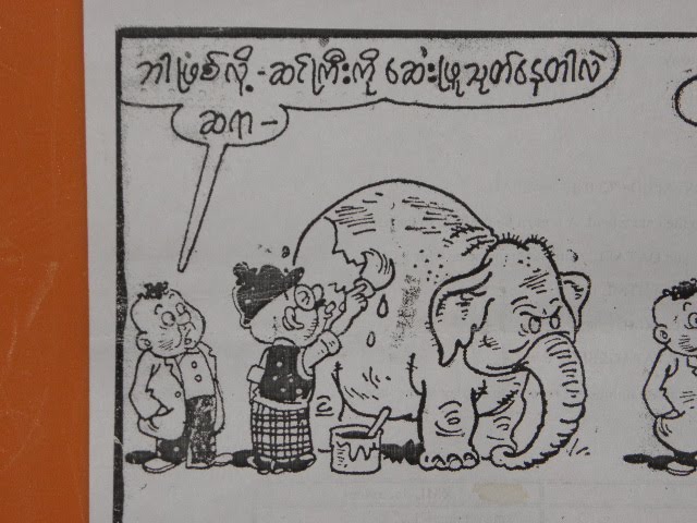 >Cartoon Than Kywe – Whit Elephant Tales – Old Trick works forever on Burmese