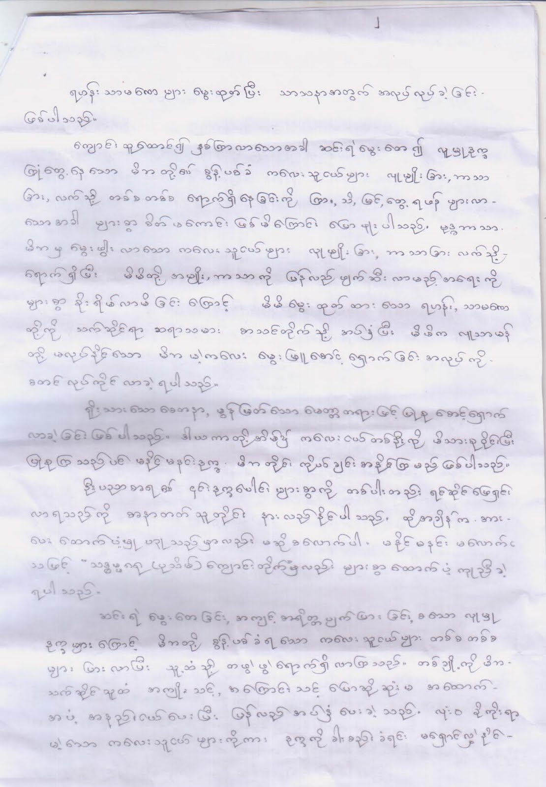 (ပူးတြဲမွာ – ဆရာေတာ္ၾကီးမ်ား ေပးပိုု႔ေသာ လက္မွတ္ထိုုးစာျဖစ္သည္)