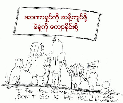 >Cartoon Maung Yit – To Free from Burmese Dictatorship, Don’t go to the Poll !!!