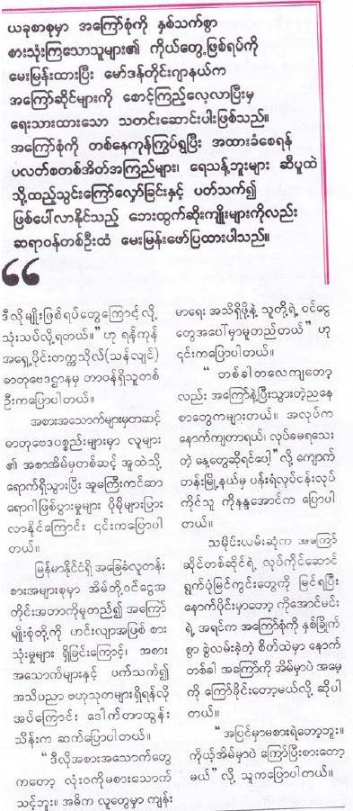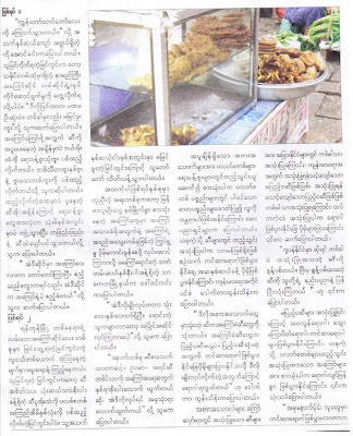 အေၾကာ္သည္တဦး၏ “ဒီလုိမ်ဳိးလုပ္တာက သုံးေလးႏွစ္ေလာက္ ရိွၿပီ။ ေရာင္းတ့ဲသူက မ်ားလာေတာ့ အၿပိဳင္အဆုိင္ လုပ္ၾကတာေပါ့” ဟူေသာ စကားကုိလည္း ကုိးကားထားသည္။