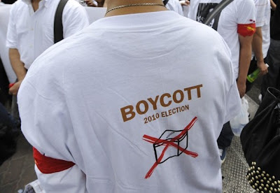 အမ်ဳိးသားဒီမုိကေရစီအဖြဲ႔ခ်ဳပ္ကေတာ့ ဒီ ေရြးေကာက္ပြဲကို သပိတ္ေမွာက္မယ္ တဲ့။ က်ေနာ္က အမ်ဳိးသားဒီမုိကေရစီ အဖြဲ႔ခ်ဳပ္ ပါတီဝင္တေယာက္ မဟုတ္ေပမယ့္ ေရြးေကာက္ပြဲကို အခုလို လမ္းစဥ္ခ်မွတ္ၿပီး သပိတ္ေမွာက္တာကို ႀကိဳဆို ေထာက္ခံပါတယ္။