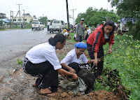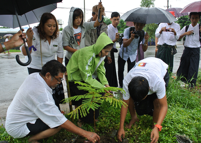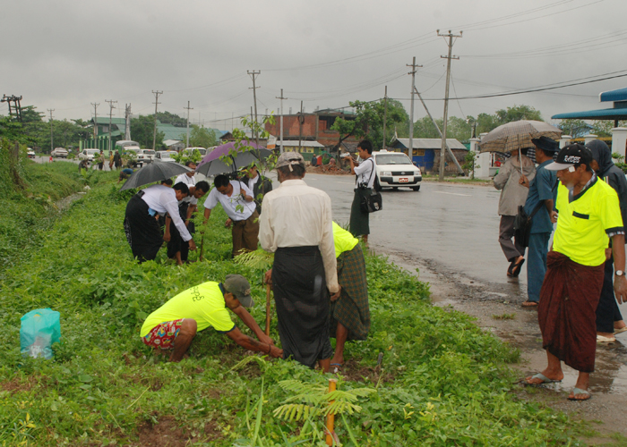 သဘာဝပတ္ဝန္းက်င္ဆိုင္ရာ ေဟာေျပာပြဲအၿပီးတြင္ သစ္ပင္စိုက္ပ်ိဳးျခင္း အခမ္းအနားအား ဆက္လက္ က်င္းပခဲ့ေပသည္။ နာေရးကူညီမႈအသင္း(ရန္ကုန္)မွ ကမၻာ့ပတ္ဝန္းက်င္ထိန္းသိမ္းေရးေန႔ အထိမ္းအမွတ္ သစ္ပင္ မ်ားစိုက္ပ်ိဳးရန္ ေျမေနရာအား ရန္ကုန္ၿမိဳ႕ေတာ္စည္ပင္သာယာ ညႊန္ၾကားေရးမွဴးမွ ေျမေနရာမ်ား ညႊန္ၾကားျပသ ခဲ့သည့္ ေျမာက္ဒဂံုၿမိဳ႕နယ္ ဗိုလ္မွဴးဗထူးလမ္းတစ္ေလွ်ာက္ (ဝဲ / ယာ) မ်ားတို႔တြင္ ခေရပင္ (၈ဝ)၊ စိန္ပန္းပင္ (၃ဝ)၊ ထိုင္ဝမ္ဗန္ဒါပင္ (၂ဝ)၊ တည္ပင္ (၂ဝ)၊ ေရတမာပင္ (၅ဝ)တို႔အား နာေရးကူညီမႈအသင္း(ရန္ကုန္) ဥကၠဌ၊ ဒု-ဥကၠဌ၊ လုပ္အားေပးအသင္းသား/သူမ်ား၊ ဂီတပညာ႐ွင္မ်ား၊ ရန္ကုန္ၿမိဳ႕ေတာ္စည္ပင္သာယာေရးေကာ္မတီ ပန္းဥယ်ာဥ္ ဌာန၊ Monsoon Nursery & Landscape Care Group အဖြဲ႔သားမ်ား၊ KMA Construction Group အဖြဲ႔သားမ်ား ႏွင့္ နာေရးကူညီမႈအသင္း(ရန္ကုန္) အတြင္းေရးမွဴး ေဒၚေ႐ႊဇီးကြက္သည္လည္း ေျခေထာက္အ႐ိုးအက္ေန၍ ေက်ာက္ပတ္တီးျဖင့္ မိုးေရစက္မ်ားထဲတြင္ စိုက္ပ်ိဳးရန္သတ္မွတ္ထားသည့္ လမ္းတစ္ေလွ်ာက္ႏွင့္ အမွတ္ (၂) အေျခခံပညာမူလတန္း ေက်ာင္းပတ္ဝန္းက်င္အား သန္႔႐ွင္းေရးမ်ားျပဳလုပ္ခဲ့ၾကၿပီး သစ္ပင္မ်ားစိုက္ပ်ိဳးခဲ့သည္။ မိုးတဖြဲဖြဲၾကားမွ အင္တိုက္အားတိုက္ တက္ညီလက္ညီျဖင့္ ဗိုလ္မွဴးဗထူးလမ္းမတေလွ်ာက္ နာေရးကူညီမႈအသင္း (ရန္ကုန္) ရံုးခ်ဳပ္ေရွ႕မွ ဒဂံုတကၠသိုလ္အထိ စိုက္ပ်ိဳးခဲ့ၾကရာ အျခားေသာေနရာမ်ားတြင္ အဆင္ေျပေခ်ာေမြ႔ ခဲ့ေသာ္လည္း ယခင္ကာလမ်ားတြင္ စြန္႔ပစ္အမိႈက္ပံုအျဖစ္ အသံုးျပဳထားေသာ အသင္းရံုးအေရွ႕တြင္ သစ္ပင္စိုက္ပ်ိဳး ရန္ ေျမတူးရာတြင္ ေျမေအာက္မွ ပလက္စတစ္အမိႈက္္မ်ား ထြက္ေပၚလာျဖင့္ အဆင္မေျပမႈမ်ားရွိခဲ့သည္။