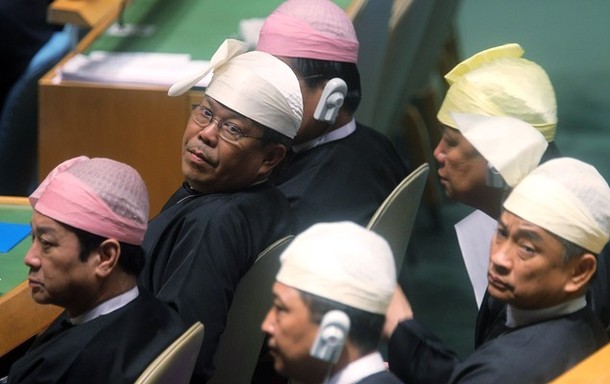 ျမန္မာစစ္ေခါင္းေဆာင္မ်ား ကုလညီလာခံထဲကို ျမန္မာ၀တ္စုံနဲ႔ ခ်ီတက္