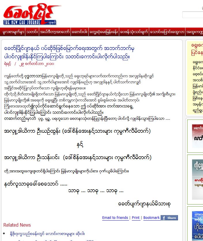ျပည္ပအေျခစုိက္ ျမန္မာ အင္တာနက္ စာမ်က္ႏွာမ်ား အဆက္အျပတ္ တုိက္ခုိက္ခံေနရခ်ိန္တြင္ ယခု ေနာက္ဆုံး ထိခုိက္သြားသည့္ ၀က္ဆုိက္မွာ ဘန္ေကာက္အေျခစုိက္ ေခတ္ျပိဳင္ သတင္းဌာန၏ ၀က္ဆုိက္ ျဖစ္သည္။