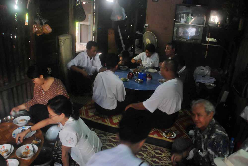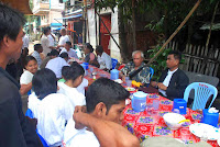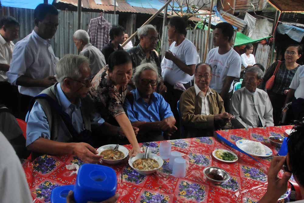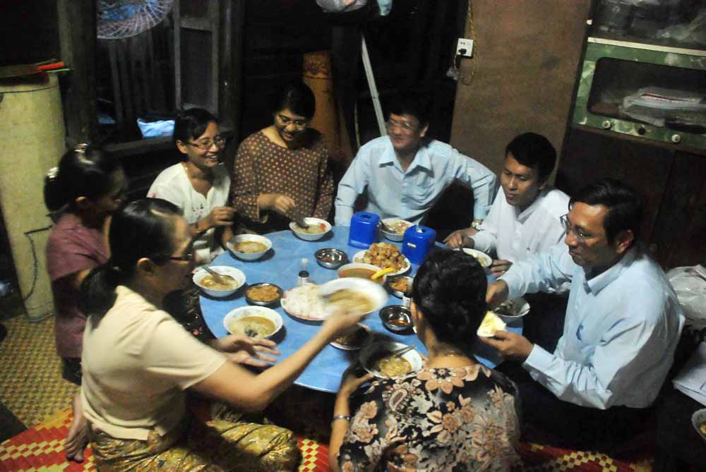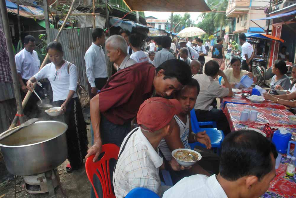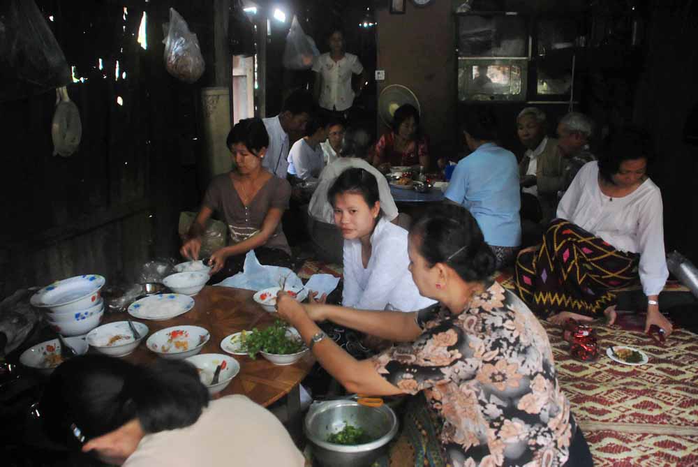 သံဃာေတာ္ ၃ ပါးကို နံနက္ ၅ နာရီ ၁၅ မိနစ္မွာ အာ႐ံုဆြမ္းကပ္လွဴၿပီး သကၤန္းဒြိစံုမ်ားကို ဆက္ကပ္ လွဴဒါန္းခဲ့ၾကပါတယ္။ ဆြမ္းေကၽြးကို လိႈင္ၿမိဳ႕နယ္ ၁၃ ရပ္ကြက္၊ သီရိၿမိဳင္ ၃ လမ္း၊ အိမ္အမွတ္ ၁၉ ေနအိမ္မွာ က်င္းပခဲ့တာပါ။