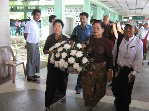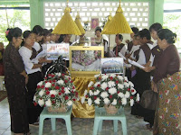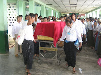 ယေန႔ ၄.၁၀.၂၀၁၀ (တနလၤာေန႔) နံနက္ (၁၁း၀၀) နာရီအခ်ိန္တြင္ ေရေဝးသုႆန္၌ နာေရး ကူညီမႈအသင္း(ရန္ကုန္)က အလွဴမီနီယမ္ မွန္ေခါင္းျဖင့္ စ်ာပနအခမ္းအနား ျပင္ဆင္ေပးကာ အသင္းသူ/သားမ်ား၊ နာေရးကူညီမႈအသင္း(ရန္ကုန္) ဝတ္အဖြ႔ဲမွ သံေဝဂလကၤာမ်ား ရြတ္ဖတ္ပူေဇာ္ အမွ်ေပးေဝျခင္းတို႔ကို ကုသိုလ္ျဖစ္ေပးဆပ္ ကူညီပံ့ပိုး ေပးခဲ့ပါသည္။