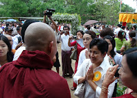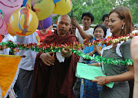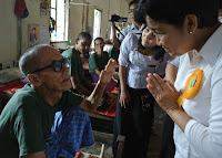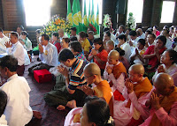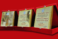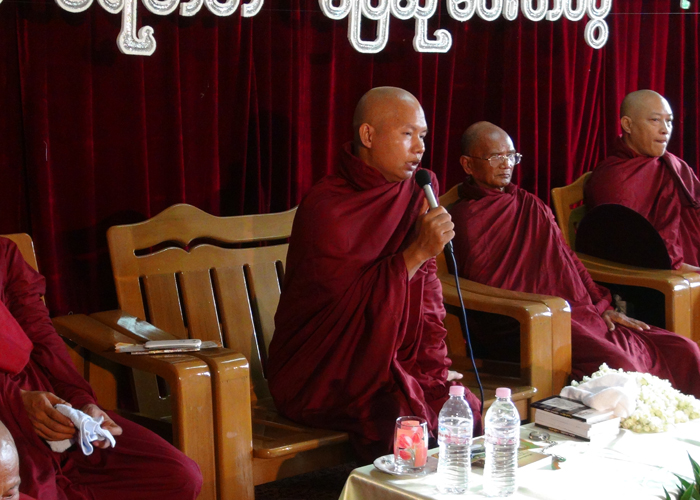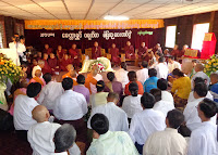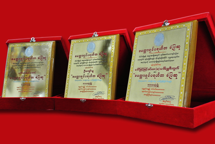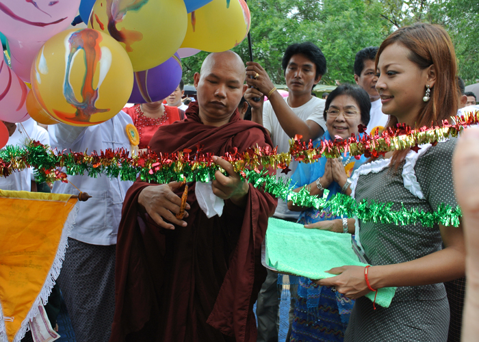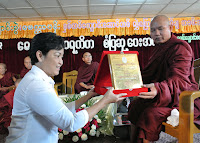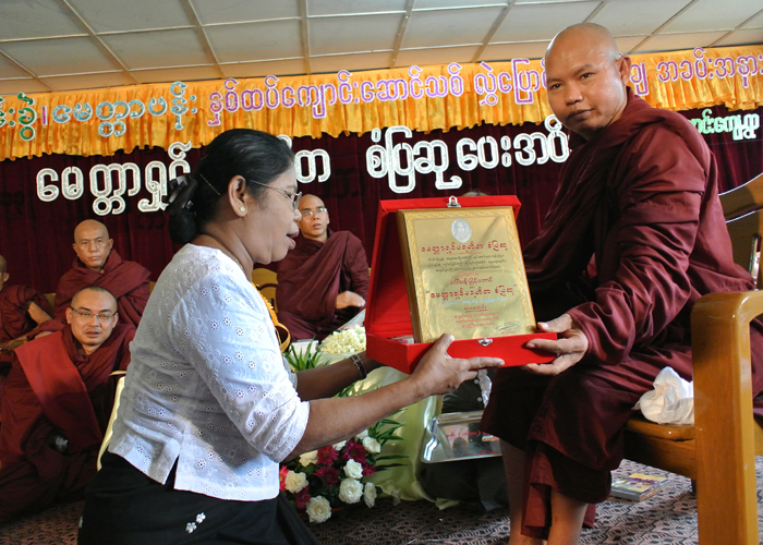 ထို႔ေနာက္ စံျပဆုရ႐ိွသူမ်ားအား ဆရာေတာ္မွ ဆုအသီးသီးခ်ီးျမႇင့္ေပးအပ္ခဲ့ရာတြင္ နာေရးကူညီမႈ အသင္း(ရန္ကုန္) ဥကၠဌ ဦးေက်ာ္သူသည္ လူမႈေရးေဟာေျပာပြဲမ်ားျဖင့္ ခရီးလြန္ေနသည့္အတြက္ အတြင္း ေရးမွဴး ေဒၚျမင့္ျမင့္ခင္ေဖ (ခ) ေ႐ႊဇီးကြက္မွ ကိုယ္စားလက္ခံရယူခဲ့သည္။ ဆုရရိွသူ ကိုယ္စား နာေရး ကူညီမႈအသင္း(ရန္ကုန္) အတြင္းေရးမွဴး ေဒၚျမင့္ျမင့္ခင္ေဖ (ခ) ေ႐ႊဇီးကြက္မွ “မိမိသည္ တရားစခန္းသို႔ ေရာက္႐ိွေနတဲ့အတြက္ အခမ္းအနားတက္ဖို႔ အစီအစဥ္မ႐ွိပါဘူး။ ကိုေက်ာ္သူ ေဟာေျပာပြဲခရီး ျပန္မ ေရာက္ေသးေတာ့ တရားစခန္းမွာ ဆရာေတာ္ကုိခြင့္ေတာင္းၿပီး လာျခင္းျဖစ္ေၾကာင္း၊ ယခင္က ေက်းဇူး တင္စကားကို ဦးေက်ာ္သူေျပာေပးပါရန္ ခြင့္ေတာင္းထားတဲ့အတြက္ ကိုေက်ာ္သူမ႐ွိေတာ့ မိမိမွ ေက်းဇူး တင္စကားေျပာျခင္းျဖစ္ေၾကာင္း၊ ကိုေက်ာ္သူက ယခုရ႐ိွေသာဆုသည္ သူအရင္ကရ႐ိွခဲ့တဲ့ ဆုမ်ားထက္ အျမင့္ျမတ္ဆံုးဆုဟု ေျပာခဲ့ပါေၾကာင္း၊ ျမတ္စြာဘုရား႐ွင္၏ စကားအတိုင္း ဗုဒၶဘုရား၏ သားေတာ္ျဖစ္တဲ့ သံဃာေတာ္မွခ်ီးျမႇင့္တဲ့ ဆုဟာ အျမင့္ျမတ္ဆံုးပါျဖစ္ေၾကာင္း၊ ျမန္မာျပည္ထဲမွာ ဒီလိုဆုေပးတာဟာ အင္မ တန္မွရွားပါေၾကာင္း၊ ဆက္လက္ၿပီးမွာလိုက္တာက သူဟာ ဒီလိုဆုေတြကို ေမွ်ာ္ကိုးၿပီး လူမႈေရးေတြ လုပ္ခဲ့ တာမဟုတ္ပါဘူး။ ဒီလိုအသိအမွတ္ျပဳခံရတာလည္း တကယ္ဂုဏ္ယူဝမ္းေျမာက္ပါေၾကာင္း၊ အမ်ားအျမင္ မွာ ပရဟိတအလုပ္ကို တျခားဘာသာဝင္ေတြရဲ႕ အလုပ္ဟုထင္ေနျခင္းကို ဆရာေတာ္မွ ပရဟိတကို ျမတ္စြာဘုရား ကိုယ္ေတာ္တိုင္ရဲ႕ အဆံုးအမပါဟု ျမန္မာဗုဒၶဘာသာရဲ႕အျမင္ကိုျမင္ေအာင္ လက္ေတြ႔ လုပ္ျပခဲ့တဲ့အတြက္ ဆရာေတာ္ကို တပည့္ေတာ္မ ေက်းဇူးအထူးတင္ပါေၾကာင္း” ေက်းဇူးတင္စကား ေျပာၾကားခဲ့ၿပီး “ေမတၱာ႐ွင္ပရဟိတစံျပဆု” ဆု႐ွင္တစ္ဦးျဖစ္သူ ဦးခ်စ္စံဝင္းမွ ေက်းဇူးတင္စကားေျပာ ၾကားခဲ့သည္။ နာေရးကူညီမႈအသင္း(ရန္ကုန္)သို႔ ဦးခိုင္မိုရ္မင္း + ေဒၚခိုင္ဇာလင္း သားေမာင္ေအာင္ခန္႔ ျမတ္တို႔မွ အလွဴေငြ (၅) သိန္းက်ပ္တိတိအား လွဴဒါန္းေပးအပ္ခဲ့ရာ ေဒၚျမင့္ျမင့္ခင္ေဖမွ လက္ခံရယူ ခဲ့သည္။ ထို႔ေနာက္ အ.ထ.က ေက်ာင္းခြဲ၊ ေမတၱာပန္း ႏွစ္ထပ္ေက်ာင္းေဆာင္သစ္ အေဆာက္အဦးႏွင့္ ပရိေဘာဂမ်ားအား ပညာေရးဝန္ႀကီးဌာသို႔ အလွဴ႐ွင္ ဦးတင္ေမာင္ေအး (ခ) ဦးငယ္ေလး + ေဒၚနန္းၾကည္ ေအာင္ (ခ) မနန္း တို႔မွ လႊဲေျပာင္းေပးအပ္ခဲ့ျခင္းအား ပညာေရးမွဴးမွ ေက်းဇူးတင္စကားေျပာၾကားခဲ့ၿပီး ၾကြေရာက္လာၾကေသာ သံဃာေတာ္မ်ားတို႔အား သကၤန္းပရိကၡရာမ်ား ဆပ္ကပ္လွဴဒါန္းျခင္းႏွင့္ ႏွစ္ထပ္ ေက်ာင္းေဆာင္သစ္ လွဴဒါန္းမႈအား ေရစက္ခ် အမွ်ေပးေဝခဲ့သည္။ ယင္းေနာက္ အ.ထ.က ေက်ာင္းခြဲ၊ ေမတၱာပန္း ႏွစ္ထပ္ေက်ာင္းေဆာင္သစ္အား ေမတၱာ႐ွင္ဆရာေတာ္မွ ဖဲႀကိဳးျဖတ္ဖြင့္လွစ္ေပးခဲ့ၿပီး စာ
