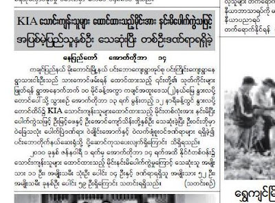 ယေန႔ထုတ္ ေၾကးမုံသတင္းစာမွ KIA ႏွင့္ သက္ဆုိင္ေသာ သတင္း။