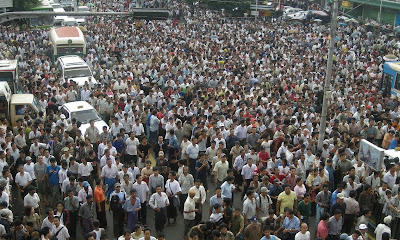 အခုပဲ ၾကည့္ေလ …။ က်ဳပ္တို႔ျပည္သူလူထုက နအဖ စစ္အစိုးရကို မ်က္လွည့္ျပန္ျပေနၾကၿပီ။ သူတို႔ အင္မတန္ ခ်စ္ျမတ္ႏိုးတဲ့ အားကိုးတဲ့ ေဒၚေအာင္ဆန္းစုၾကည္ကို ေမ့ခ်င္ေယာင္ေဆာင္ေနၾကၿပီ။ ၁၅ ႏွစ္ျပည့္ေျမာက္ အခ်ဳပ္အေႏွာင္ခံေနရတဲ့ ေဒၚေအာင္ဆန္းစုၾကည့္ရဲ႕ ဘဝသမိုင္းကို သတိမထားမိဟန္ ေဆာင္ေနၾကၿပီ။ သိတယ္ေနာ္ … ႏိုင္ငံရဲ႕အဓိက အတိုက္အခံပါတီျဖစ္တဲ့ အမ်ဳိးသားဒီမိုကေရစီအဖြဲ႔ခ်ဳပ္ NLD ကလဲ ေရြးေကာက္ပြဲကို သပိတ္ေမွာက္ထားၿပီ၊ သပိတ္ေမွာက္ဆႏၵျပတဲ့အေနနဲ႔ ရဟန္းျပည္သူ တခ်ဳိ႕လဲ ျပည္ပထြက္လာကုန္ၾကၿပီ။