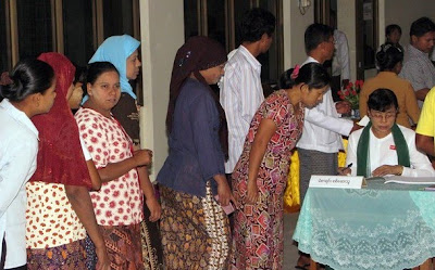 ႏုိ၀င္ဘာ ၇၊ ၂၀၁၀ရန္ကုန္မွ မဲရုံတခုတြင္ မဲေပးရန္ တန္းစီေနသူမ်ား (photos; Reuters, AP)