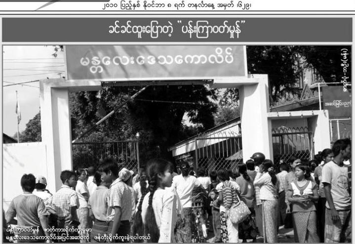 ယခု ရုိက္ကူးေနေသာ ပန္းၾကာ၀တ္မႈန္ ရုပ္ရွင္ဇာတ္ကား ရုိက္ကြင္းအတြက္ ပုံစံတူ ဖန္တီးထားေသာ အတိတ္ေခတ္ မႏၱေလးေဒသေကာလိပ္ အျပင္အဆင္။ “အ၀တ္အစားက အစ ဟုိေခတ္က ပုံစံမ်ဳိး တာ၀န္ယူၿပီး ၀တ္ေပးထားတာ ဆုိေတာ့ တကယ့္ကုိ ကြ်န္ေတာ္တုိ႔ ေခတ္က မႏၱေလးတကၠသုိလ္ ျပန္ေရာက္သြားသလုိပါပဲ”