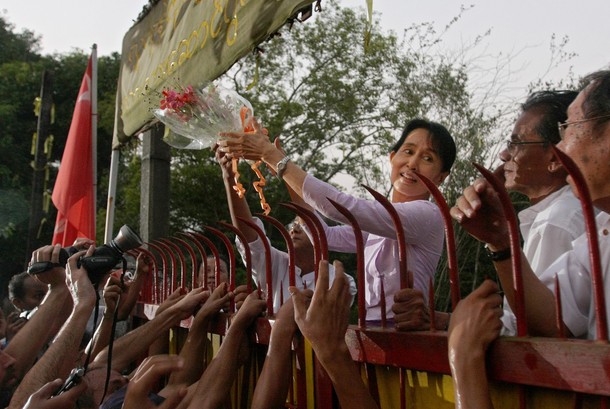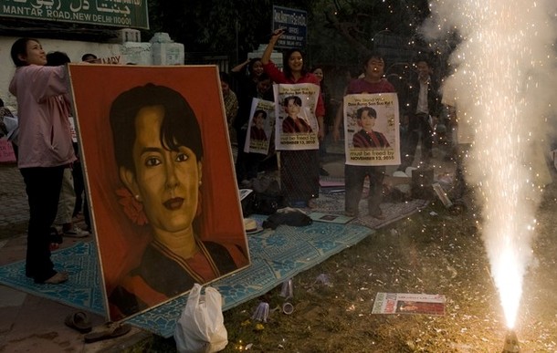 ျမန္မာစစ္အစုိးရက သူ၏ ၿပိဳင္ဘက္ ျမန္မာ့ဒီမုိကေရစီ ေခါင္းေဆာင္ ေဒၚေအာင္ဆန္းစုၾကည္ကုိ ေနအိမ္အက်ယ္ခ်ဳပ္ သက္တမ္းေစ့သည့္ ယေန႔တြင္ လႊတ္ေပးလုိက္သည္။ သူ႔ကုိ ေထာက္ခံသူ ေထာင္ေပါင္းမ်ားစြာက သူ႔အိမ္ေရွ႕သုိ႔ ၀မ္းသာအားရ စုေ၀း ေရာက္ရိွသြားသည္။ ပန္းပန္ထားေသာ ေဒၚစုက ျခံတခါး၀သုိ႔ ေရာက္လာခ်ိန္တြင္ ပရိသတ္က ၀မ္းသာအားရ ေအာ္ဟစ္ၾကသည္။