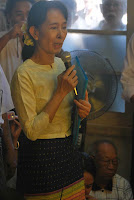 ျမန္မာဒီမိုုကေရစီ လႈပ္ရွားမႈ ေခါင္းေဆာင္ ေဒၚေအာင္ဆန္းစုုၾကည္ဟာ ယမန္ေန႔ နံနက္ပိုုင္း ၉ နာရီက ပါရမီလမ္းမွာ ရွိတဲ့ သခင္သိန္းေဖေနအိမ္မွာ ၀ါရင့္ႏိုုင္ငံေရးသမားၾကိးမ်ားကိုု ဂါရ၀ျပဳ ေတြ႔ဆုုံကန္ေတာ့ခဲ့ပါတယ္။