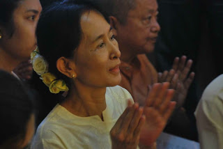 ေဒၚေအာင္ဆန္းစုုၾကည္က ၀ါရင့္ႏိုုင္ငံေရးသမားၾကီးမ်ားအား ဂါရ၀ျပဳ