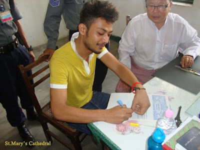 ရန္ကုန္ျမိဳ႕ စိန္႔ေမရီဘုရားေက်ာင္းတြင္ တကုိယ္ေတာ္ဆႏၵျပသူ ရဲတုိက္သည္ အာဏာပုိင္တုိ႔၏ ထိန္းသိမ္းခံရျခင္းမွ ျပန္လည္ လြတ္ေျမာက္လာျပီးေနာက္ ဘုရားေက်ာင္းသုိ႔ သြားေရာက္ျပီး ေတာင္းပန္ခ့ဲသည္။