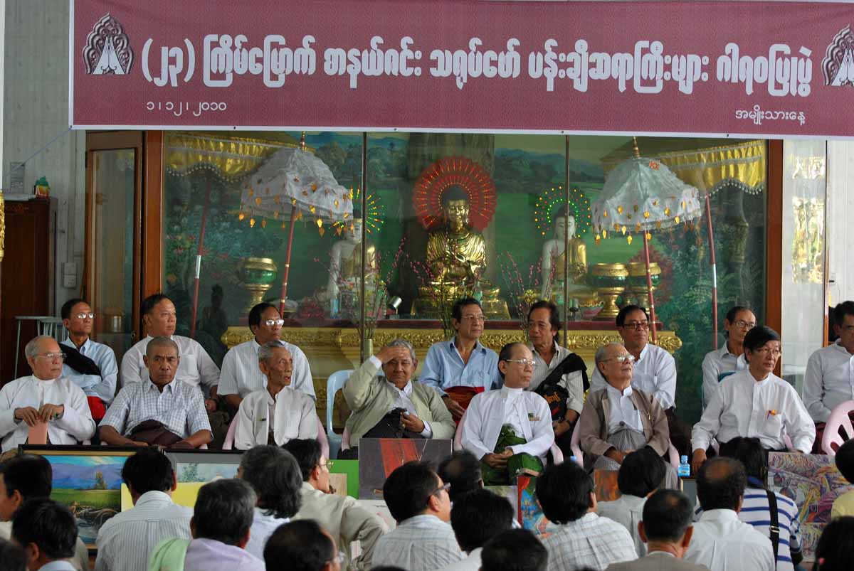 ဒီဇင္ဘာ ၁၊ ၂၀၁၀၊ အမ်ဴိးသားေန႔ နံနက္ ၁၀ နာရီက ေန႔လည္ ၁၂ နာရီအထိ ရန္ကုန္႔ျမိဳ႔၊ ၃၅ လမ္း အေပၚဘေလာက္မွာ ရွိတဲ့ ဓမၼရံသံ ဓမၼာရုံမွာ စာနယ္ဇင္းသရုပ္ေဖာ္ ပန္းခ်ီဆရာၾကီးမ်ားကို ဂါရ၀ျပဳပြဲ က်င္းပခဲ့ပါတယ္။