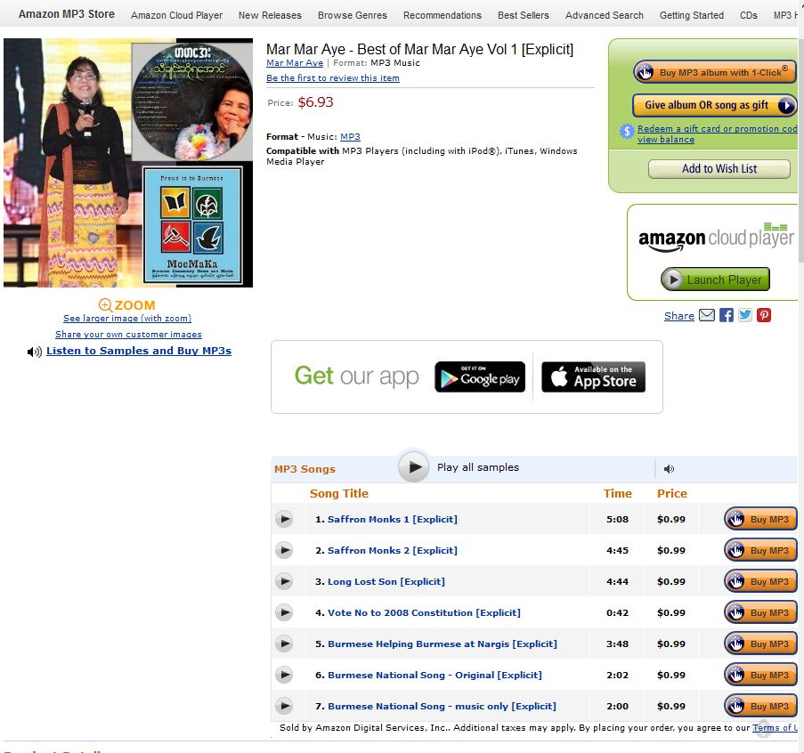 ေဒၚမာမာေအး၏ သီခ်င္းစီဒီ မိုးမခ Amazon MP3 တြင္ အြန္လိုင္းမွ ရယူႏိုင္ျပီ