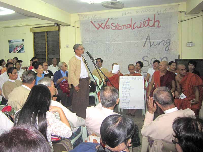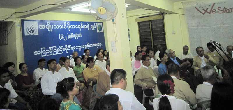 ဒီဇင္ဘာ ၁၀၊ ေသာၾကာေန႔၊ ရန္ကုန္၊ အင္န္အယ္ဒီရုံးခ်ဴပ္မွာ က်င္းပခဲ့တဲ့ ကမာၻ႔လူ႔အခြင့္အေရးေန႔ အထိမ္းအမွတ္အခမ္းအနား ျမင္ကြင္းျဖစ္ပါတယ္။
