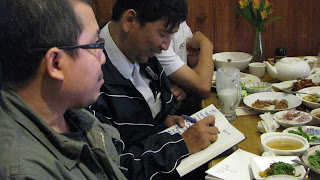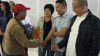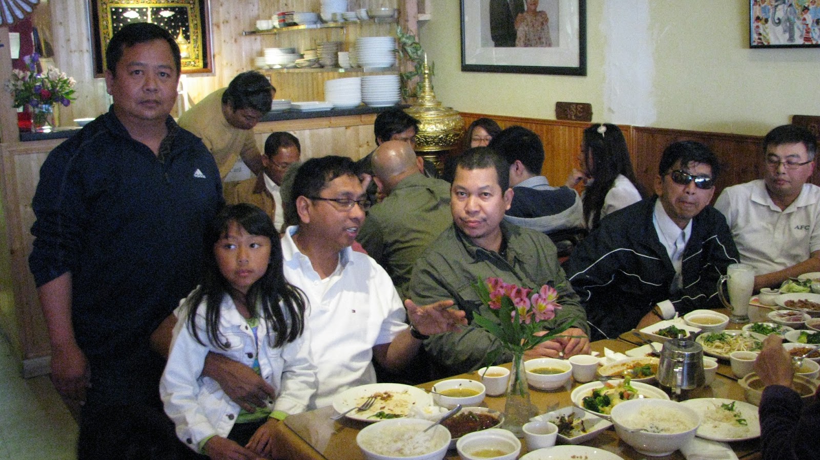 အဲသည္ေနာက္မွာ ေလဆိပ္အနီးက ျမန္မာစားေသာက္ဆိုုင္တခုုမွာ အားလုုံး သြားေရာက္ျပီး ဧည့္သည္ေတာ္မ်ားကိုု ေဒသခံမ်ားက ဧည့္ခံေကၽြးေမြးၾကပါတယ္။ ခရီးပမ္းျပီး ႏြမ္းနယ္ေနပုုံရတဲ့ ကိုုမင္းကိုုႏိုုင္ဟာ ေဒသခံတိုု႔ရဲ့ ၾကိဳဆိုုမႈေတြနဲ႔ ျပန္လည္ လန္းဆန္းလာပါတယ္။ ကိုုကိုုၾကီးကေတာ့ ပင္ပန္းေနေသာ္လည္း တက္တက္ၾကြၾကြနဲ႔ ႏႈတ္ဆက္စကားမ်ား ေျပာဆိုုေနတာကိုု ေတြ႔ရပါတယ္။
