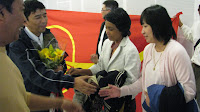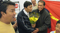ေမလ ၂၉ ၊ ညေန ၅ နာရီ ခြဲမွာ ဆန္ဖရန္စစၥကိုုေလဆိပ္ကိုု ၈၈ မ်ဳိးဆက္ ေခါင္းေဆာင္ ၂ဦး ျဖစ္တဲ့ ကိုုမင္းကိုုႏိုုင္နဲ႔ ကိုုကိုုၾကီးတိုု႔ ေရာက္ရွိလာျပီ ျဖစ္ပါတယ္။ ၈၈ မ်ဳိးဆက္တိုု႔ရဲ့ မိတ္ေဆြမ်ား ရဲေဘာ္မ်ားက တစုုတေ၀း ေစာင့္ေမွ်ာ္ျပီး ၾကိဳဆိုုၾကတာကိုုေတြ႔ရပါတယ္။ ေဒသခံတိုု႔က ပန္းစည္းမ်ားနဲ႔ ၾကိဳဆိုုၾကတာအျပင္ တန္းစီျပီး ေစာင့္ၾကိဳေနၾကတဲ့ ေဒသခံ ျမန္မာမိသားစုုေတြကိုု ကြန္ျမဴနီတီေဆာ္ၾသသူမ်ားျဖစ္ၾကတဲ့ ကိုုထြန္းျမတ္ဦးနဲ႔ ကိုုတိုုးလြင္တိုု႔က တဦးခ်င္းစီ လိုုက္လံ မိတ္ဆက္ေပးပါတယ္။