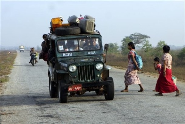 တနဂၤေႏြေန႔က ရန္ကုန္ျမိဳ႕ ေတာင္ဘက္ရိွ တံြေတးျမိဳ႕တြင္ ေတြ႔ရေသာ ခရီးသည္မ်ား ႏွင့္ ဒုတိယကမၻာစစ္ လက္က်န္ ဂ်စ္ကား
