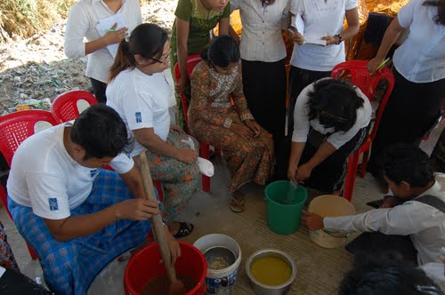 ထို႔အျပင္ သဘာဝပတ္ဝန္းက်င္ ထိန္းသိမ္းေရးႏွင့္ပတ္သက္၍ သဘာဝသီးႏွံမ်ားျဖင့္ ထုတ္လုပ္ေသာ (ေခါင္းေလွ်ာ္ရည္၊ ဆပ္ျပာရည္) တို႔ကို လက္ေတြ႔/စာေတြ႔ နာေရးကူညီမႈအသင္း (ရန္ကုန္) အတြင္းေရးမွဴး စာေရးဆရာမ ေဒၚသန္းျမင့္ ေအာင္ဦးစီး၍ ေဒၚၾကည္ၾကည္စိန္၊ ေဒၚခင္ပပမ်ဳိး၊ ေဒၚေအးေအးခိုင္တို႔မွ လူမႈေရးသင္တန္းသူ/ သားမ်ားအား လက္ေတြ႔ထုတ္လုပ္ သင္ၾကားျပသခဲ့သည္။ ယင္း ေခါင္းေလွ်ာ္ရည္၊ ဆပ္ျပာရည္တို႔မွ ဓာတုပစၥည္းမ်ား မပါဝင္ဘဲ သဘာဝသီးႏွံတို႔ျဖင့္သာ ထုတ္လုပ္ျခင္းျဖစ္သည့္အတြက္ သံုးစြဲသူတို႔အား ေစ်းႏႈန္းသက္သာ၍ က်န္းမာေရးအရလည္း ေဘးဥပါဒ္ျဖစ္ျခင္းတို႔ကို ကာကြယ္ႏိုင္သည္။