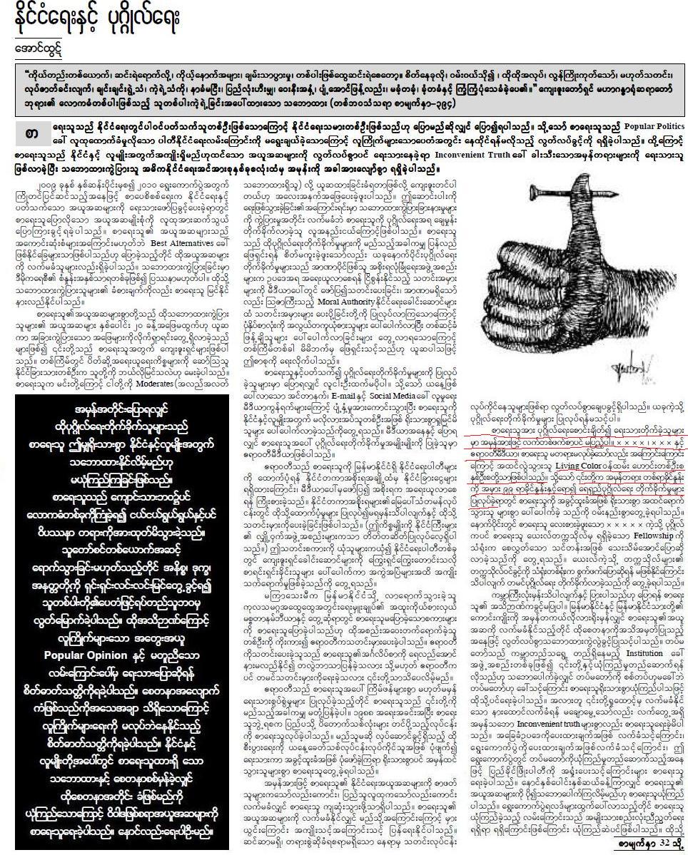 The Voice ဂ်ာနယ္၏ ပ့ဲကုိင္ ေဒါက္တာ ေန၀င္းေမာင္ (ကေလာင္အမည္ ေအာင္ထြဋ္) ၏ ေဆာင္းပါး။