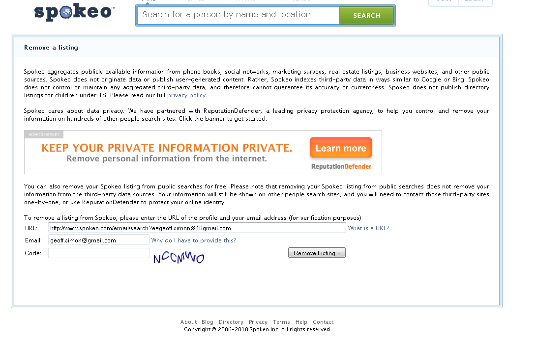 5. ေနာက္ မိမိ အီးေမးလ္လိပ္စာတခုကို ေပးရပါမယ္။ က်ေနာ္ကေတာ့ အၿမဲသံုးေနတဲ့ အီးေမးလ္လိပ္စာကို မေပးဘဲ အပိုလုပ္ထားတဲ့ အီးေမးလ္လိပ္စာတခုကို ေပးလိုက္ပါတယ္။ ေနာက္ဆံုး Code အကြက္မွာေတာ့ ေဘးနားမွာေပၚေနတဲ့ စာကို အတိအက် ရိုက္ထည့္ၿပီး အားလံုးျပည့္စံုရင္ “Remove Listing” ကို ႏွိပ္ တင္သြင္းလိုက္ပါ။
