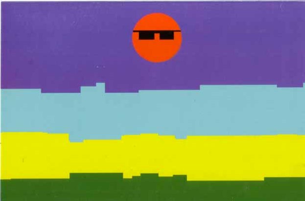 ဒီပုိ႔စကဒ္ရဲ႕ ေက်ာဘက္မွာ အဂၤလိပ္ ဘာသာနဲ႔ ေရးထားတာကေတာ့ “ေႏြရာသီ – ဤကားသည္ ရာသီဥတုမ်ားဟူေသာ ပန္းခ်ီကားတဲြမ်ားတြင္ ပါ၀င္သည္။ ေနာက္ဆုံးအႀကိမ္ အိမ္ခ်ဳပ္ က်စဥ္ ကြန္ပ်ဴတာသုံးျပီး ဆဲြထားျခင္း ျဖစ္သည္” လုိ႔ ျဖစ္ပါတယ္။ ‘Summer’ – This is one of the ‘seasons’ series that I draw on my computer during my last term of house arrest.