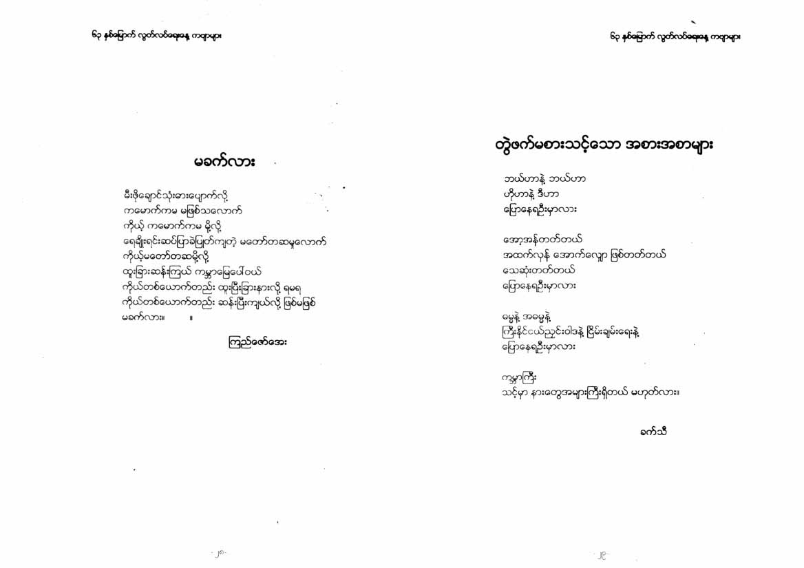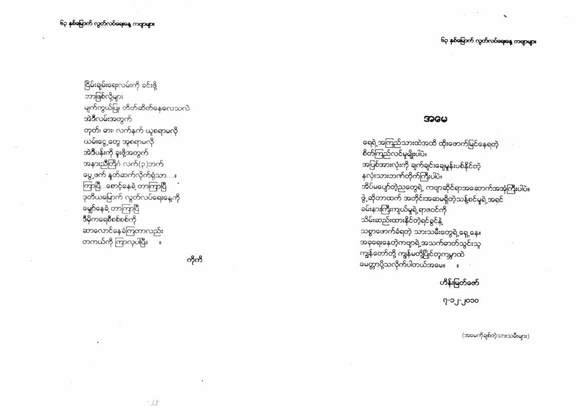 (ကဗ်ာမ်ားကုိ သတင္း ေအာက္ဆုံးတြင္ ဖတ္ႏုိင္သည္)