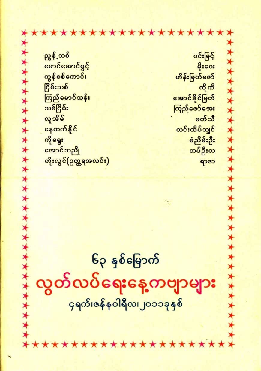 တပ္ဦးလွ၊ ရာဇာ စတ့ဲ ကဗ်ာဆရာမ်ား ပါ၀င္ ေရးသားၾကပါတယ္။