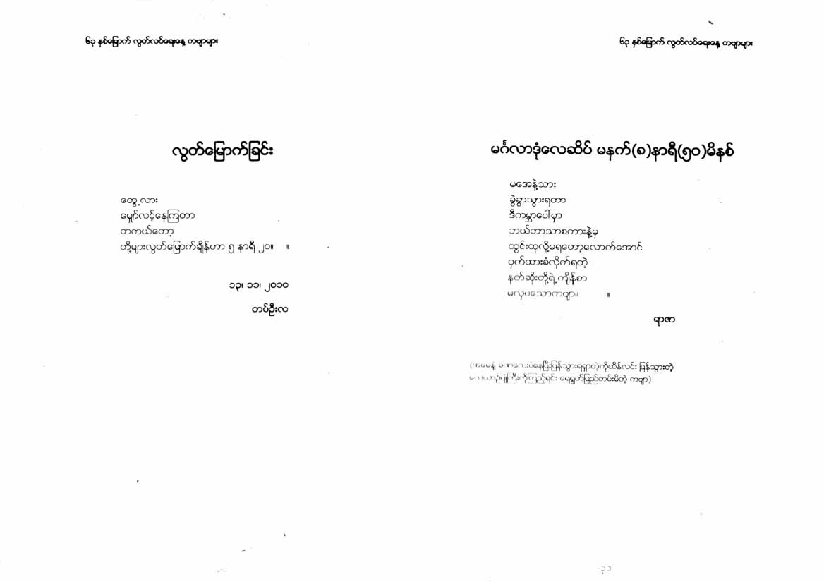 NLD ေခါင္းေဆာင္တဦးျဖစ္သူ ဦး၀င္းတင္ အမွာစာ ေရးထားတ့ဲ ဒီစာအုပ္မွာ