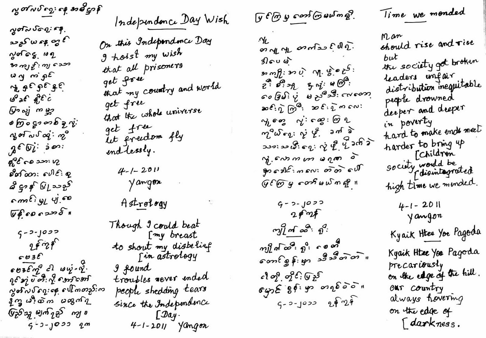 ဆရာ ဦးအ့ံေမာင္က သူေရးဖဲြ႔ထားတ့ဲ “ဆုေတာင္း” ကဗ်ာ နဲ႔ “လြတ္လပ္ေရးေန႔ အဓိ႒ာန္” ကဗ်ာကုိ ရြတ္ဖတ္ခ့ဲပါတယ္။